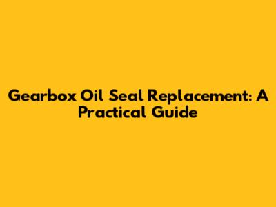 Gearbox Oil Seal Replacement: A Practical Guide