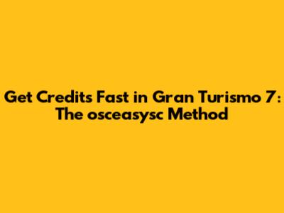 Get Credits Fast In Gran Turismo 7: The Osceasysc Method