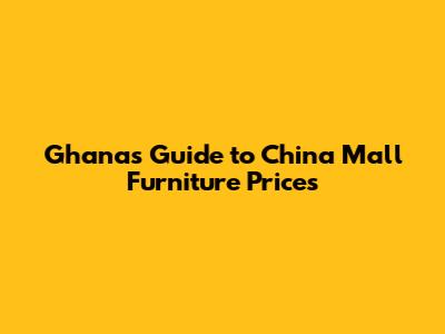 Ghana's Guide To China Mall Furniture Prices