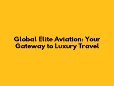 Global Elite Aviation: Your Gateway To Luxury Travel