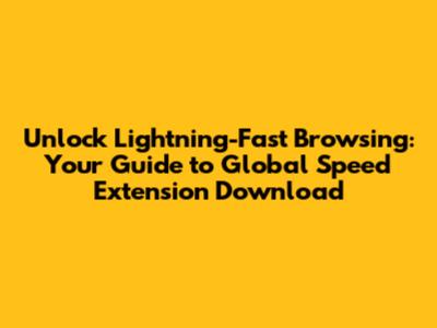 Unlock Lightning-Fast Browsing: Your Guide to Global Speed Extension Download