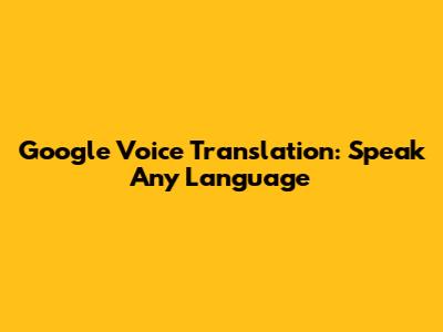 Google Voice Translation: Speak Any Language