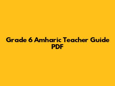 Navigating Your Grade 6 Amharic Teacher Guide PDF