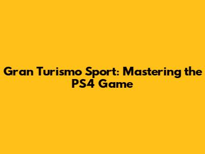 Gran Turismo Sport: Mastering The PS4 Game