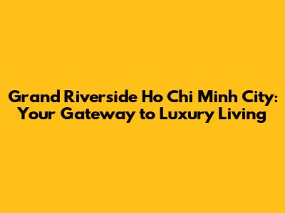 Hey guys! Are you dreaming of a life filled with luxury, convenience, and breathtaking views? Look no further than Grand Riverside Ho Chi Minh City! This stunning residential development is redefining urban living in Vietnam. Let's dive into what makes Grand Riverside the perfect place to call home.