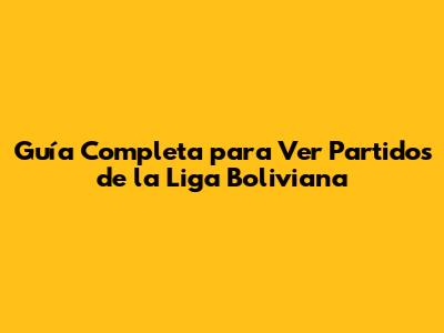Guía Completa Para Ver Partidos De La Liga Boliviana