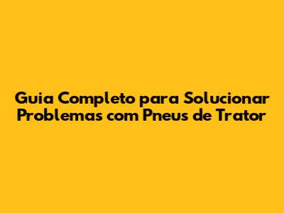 Guia Completo Para Solucionar Problemas Com Pneus De Trator