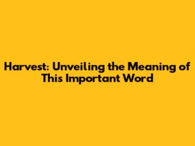Harvest: Unveiling The Meaning Of This Important Word