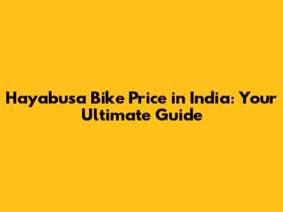 Hayabusa Bike Price In India: Your Ultimate Guide