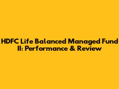 HDFC Life Balanced Managed Fund II: Performance & Review