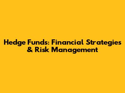 Hedge Funds: Financial Strategies & Risk Management