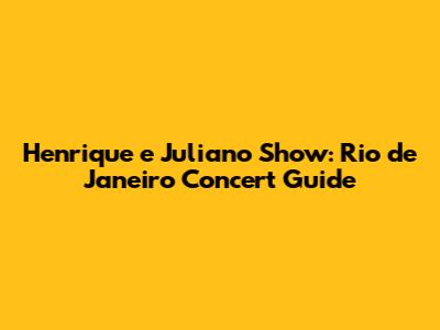 Henrique E Juliano Show: Rio De Janeiro Concert Guide