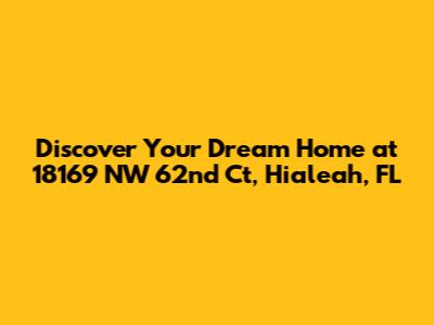 Hey everyone! Today, we're diving deep into a fantastic property that's just hit the market: 18169 NW 62nd Ct in Hialeah, Florida. If you're on the hunt for a new place to call home, especially in the vibrant Hialeah area, you're going to want to pay close attention. This isn't just any house; it's a potential gem waiting to be polished by its new owners. We'll be exploring everything this property has to offer, from its spacious living areas and potential for customization to its prime location within Hialeah. Get ready, because we're about to give you the lowdown on why 18169 NW 62nd Ct could be the perfect fit for you and your family. We'll cover the ins and outs, the pros, and what makes this particular address stand out in a competitive real estate market. So, whether you're a first-time buyer, looking to upgrade, or just curious about what's available, stick around. We've got the details you need to make an informed decision. Let's get started on this exciting journey into finding your next sanctuary!