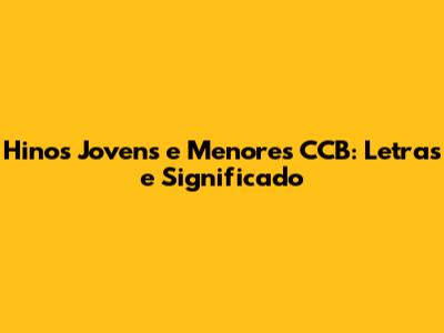 Hinos Jovens E Menores CCB: Letras E Significado