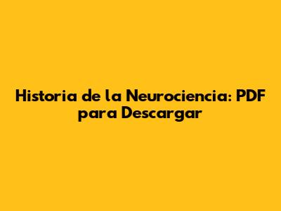 Historia De La Neurociencia: PDF Para Descargar