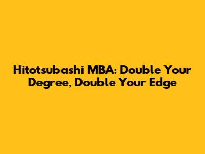 Hitotsubashi MBA: Double Your Degree, Double Your Edge