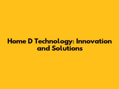 Home D Technology: Innovation And Solutions