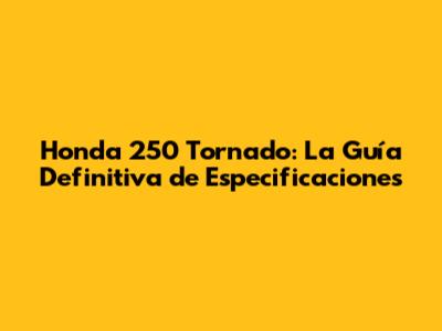 Honda 250 Tornado: La Guía Definitiva De Especificaciones