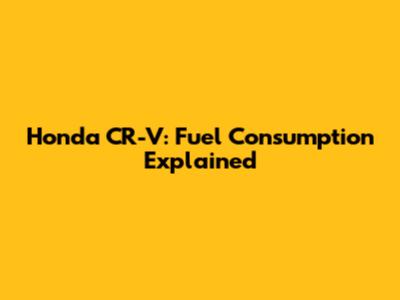 Honda CR-V: Fuel Consumption Explained
