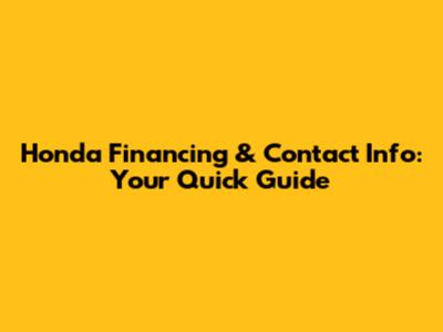 Honda Financing & Contact Info: Your Quick Guide