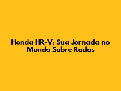 Honda HR-V: Sua Jornada No Mundo Sobre Rodas