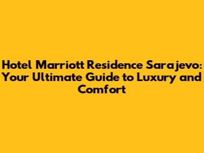 Hotel Marriott Residence Sarajevo: Your Ultimate Guide