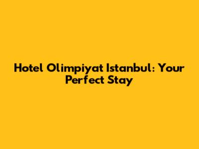 Hotel Olimpiyat Istanbul: Your Perfect Stay