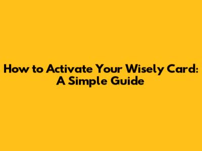Step-by-Step Guide to Activating Your Wisely Card