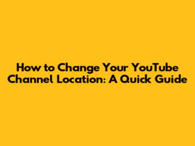 Step-by-Step Guide to Changing Your YouTube Channel Location