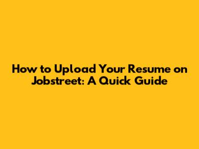 How To Upload Your Resume On Jobstreet: A Quick Guide