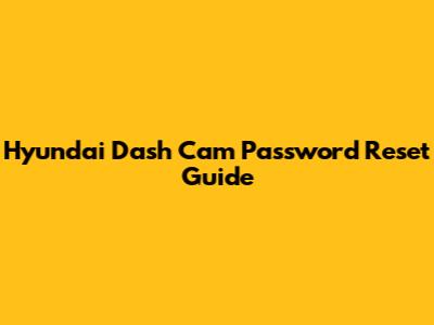 Hyundai Dash Cam Password Reset Guide
