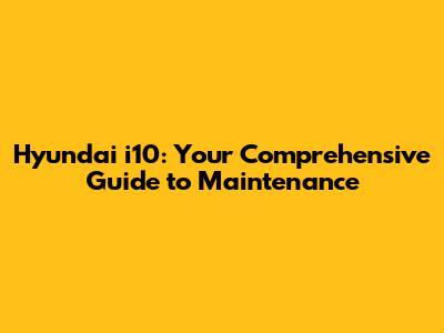 Hyundai I10: Your Comprehensive Guide To Maintenance