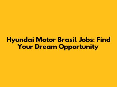Hyundai Motor Brasil Jobs: Find Your Dream Opportunity