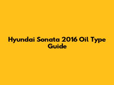Hyundai Sonata 2016 Oil Type Guide