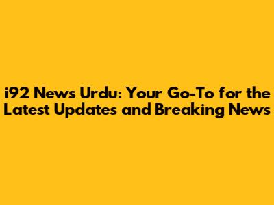 I92 News Urdu: Latest Updates & Breaking News