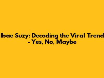 Ibae Suzy: Decoding The Viral Trend - Yes, No, Maybe