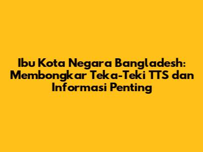Ibu Kota Negara Bangladesh: TTS Dan Fakta Menarik