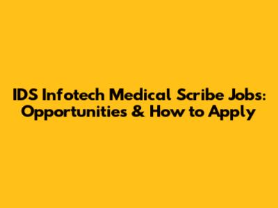 IDS Infotech Medical Scribe Jobs: Opportunities & How To Apply