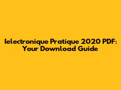 Ielectronique Pratique 2020 PDF: Download Guide