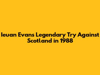 Let's dive into one of the most iconic moments in rugby history: Ieuan Evans' try against Scotland in 1988. This wasn't just any try; it was a display of sheer brilliance, speed, and opportunism that has been etched into the memories of rugby fans worldwide. This moment is more than just a sporting highlight; it's a testament to the passion, skill, and drama that make rugby such a beloved sport. We will explore the context surrounding the match, the significance of the try itself, and the lasting impact it had on Ieuan Evans' career and Welsh rugby as a whole.
