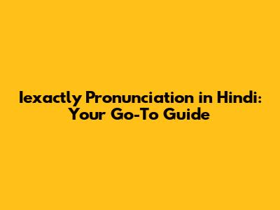 Iexactly Pronunciation In Hindi: Your Go-To Guide
