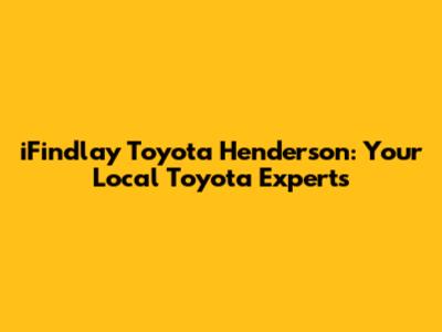 • Q: What types of vehicles does iFindlay Toyota Henderson offer? A: They have a wide variety of Toyota models, including sedans, SUVs, trucks, and hybrids. They also offer a selection of pre-owned vehicles from various makes and models.