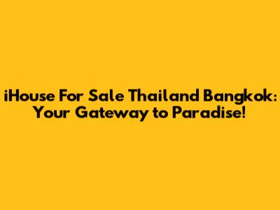 iHouse for Sale Thailand Bangkok: Your Dream Life Awaits