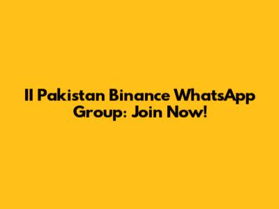 II Pakistan Binance WhatsApp Group: Join Now!