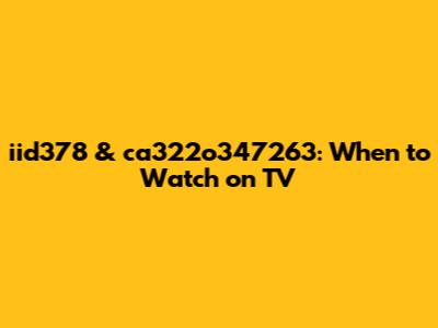 Iid378 & Ca322o347263: When To Watch On TV