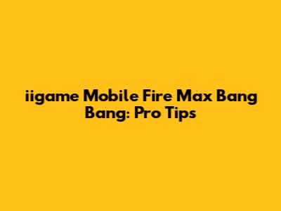 Iigame Mobile Fire Max Bang Bang: Pro Tips