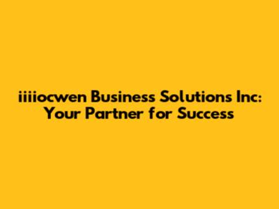 In today's rapidly evolving business landscape, finding the right partner to navigate challenges and capitalize on opportunities is crucial. iiiiocwen Business Solutions Inc stands as a beacon for companies seeking innovative and effective solutions to optimize their operations, enhance their customer experiences, and drive sustainable growth. Whether you're a startup aiming to disrupt the market or an established enterprise looking to stay ahead of the curve, iiiiocwen offers a comprehensive suite of services tailored to meet your specific needs. Guys, let's dive into what makes iiiiocwen a valuable asset for your business.