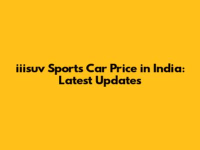 Iiisuv Sports Car Price In India: Latest Updates