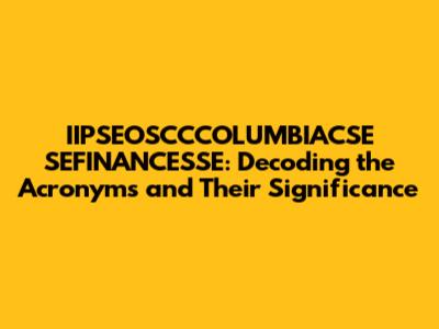 Ever stumbled upon a string of seemingly random acronyms and wondered what they meant? Today, we're diving deep into the world of IIPSEO, SCC, ColumbiaCSE, and SEFinancesSE. This article breaks down each component, exploring their individual meanings and potential interconnections. Understanding these acronyms can provide valuable insights into specific sectors or projects, making it easier to navigate complex information and grasp their overall significance. Let's get started and unravel the mysteries behind these abbreviations, providing clarity and context to help you understand their relevance in today's interconnected world. So, buckle up, guys, it's gonna be an informative ride!