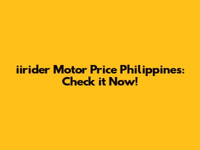 Iirider Motor Price Philippines: Check It Now!